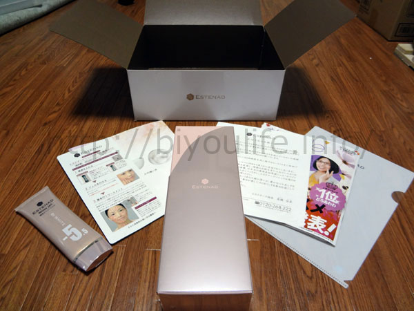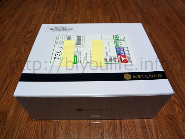 適度な重量感。外箱にはエステナードのロゴが書いてあります。